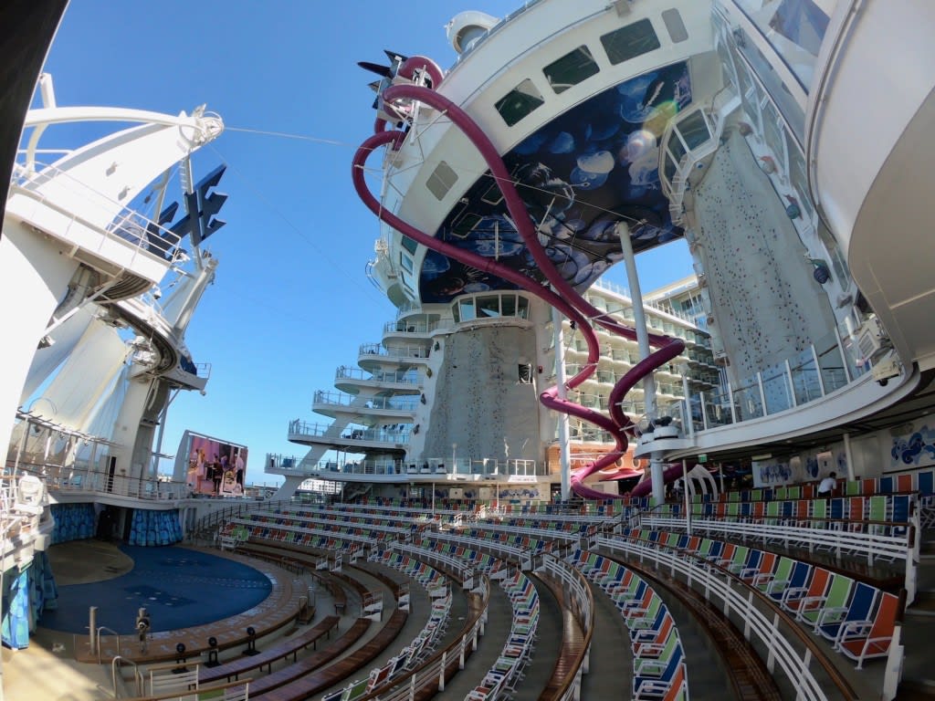 4つのプールも、フローライダーも10デッキ分のスライダーも船上であることがすごい、やっぱりハーモニーはすごいいろんな意味で度肝を抜かされました。