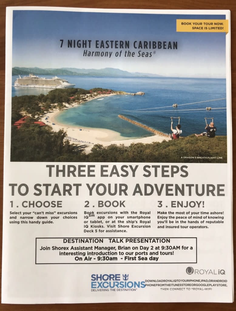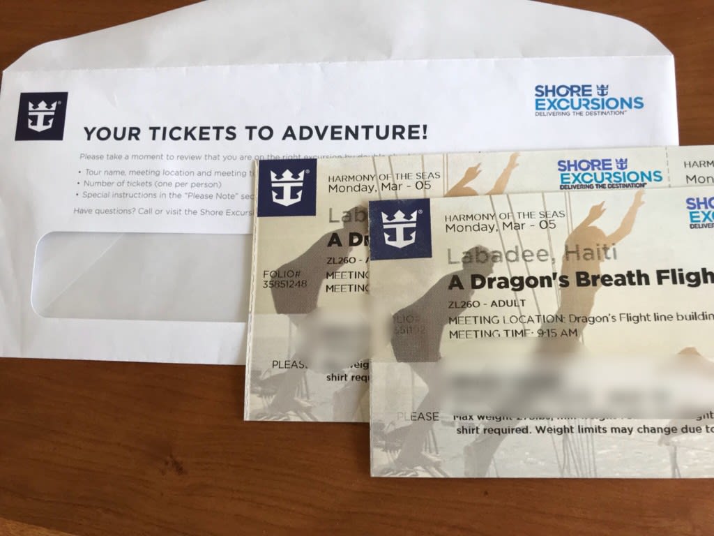 いずれかの方法でエクスカーションの申し込みをすると、その日の前夜までに部屋にチケットが届けられます。↓