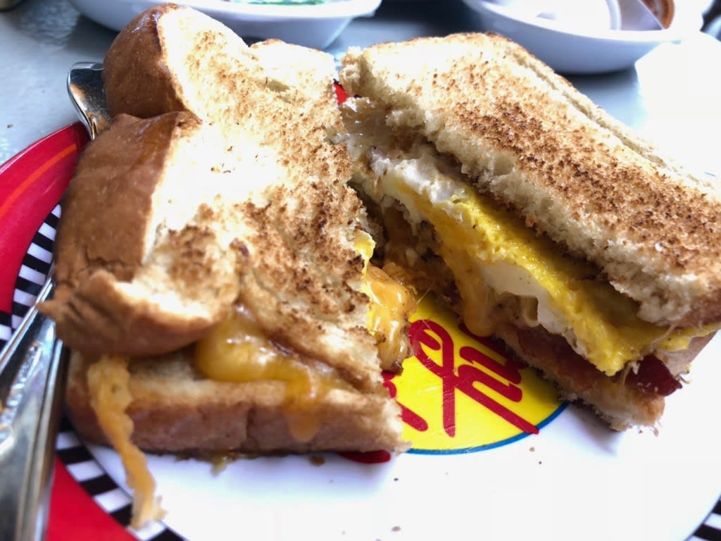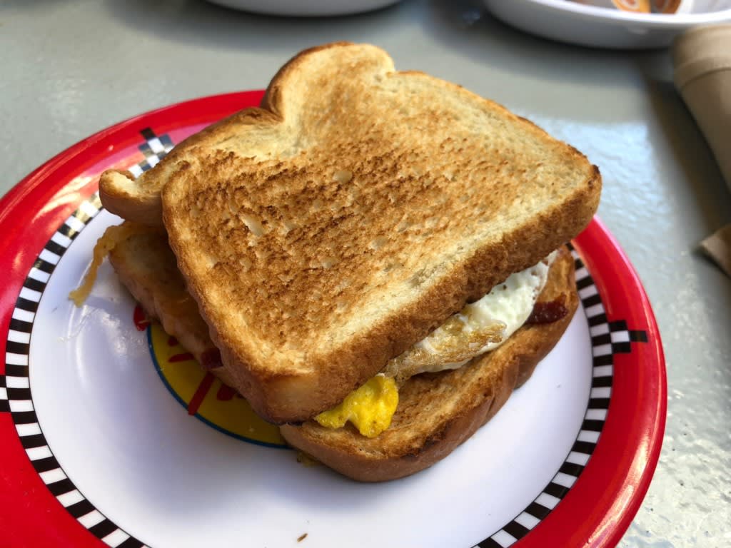 主人が迷いに迷って選んだメニュー”Breackfast Sandwich”はこちら!「なんだかわからなかったけれど結構美味しかった」と結果的に大変満足した様子!