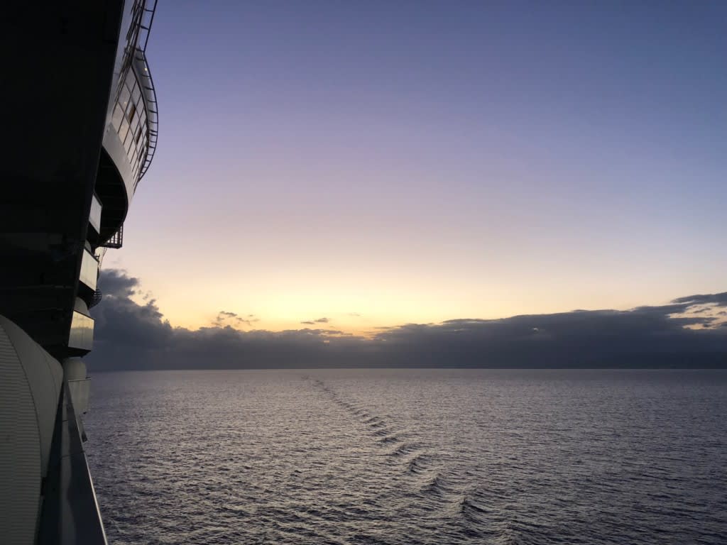 4日目の夜明け。空が明るくなってくると一気に明けてきます。この日の寄港地はジャマイカ・ファルマス。乗船4日目にしてようやく下船、初寄港です。今日は暑くなりそうです!