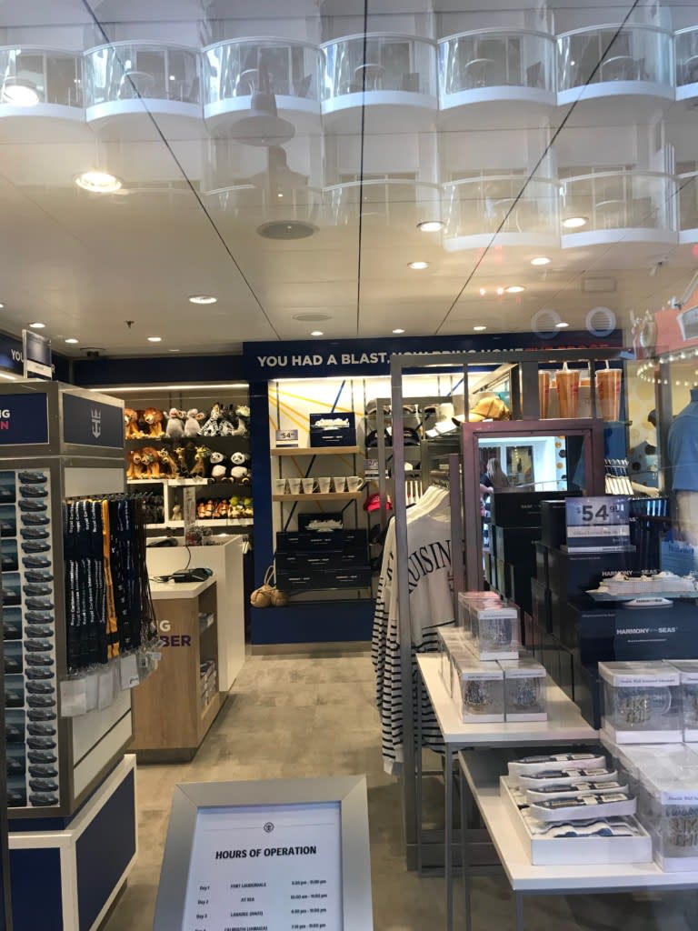 スタバの並びにロイヤルカリビアン、ハーモニーのロゴショップ。お土産屋さんです。ロイヤルプロムナードにあるショップとほぼ同じものがおいてあります。