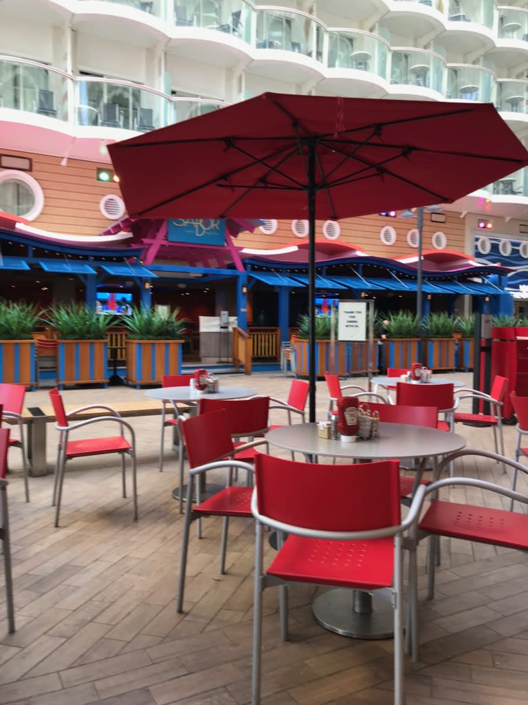 ハーモニー・オブ・ザ・シーズ(以下、ハーモニー)のデッキ6後方にあるボードウォークは”ノスタルジックな海辺の遊歩道をイメージした家族で癒える屋外エリア。”(引用:クルーズガイド)
