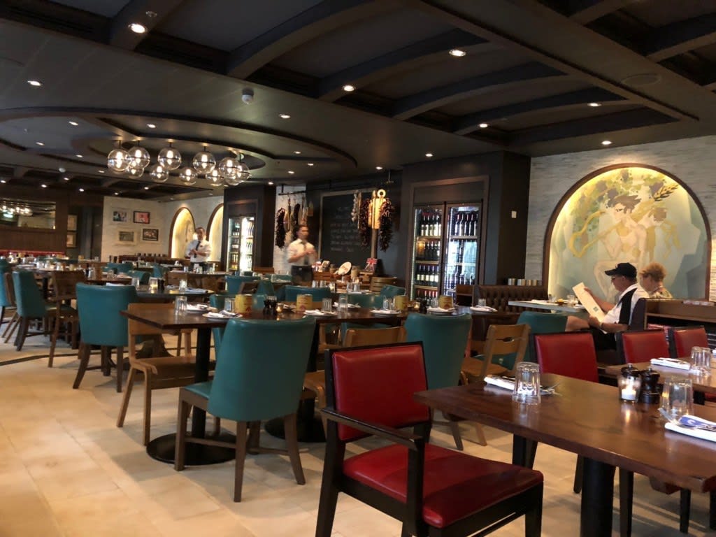 ジェイミーズイタリアンのカバーチャージはランチ時29ドル、ディナー35ドルでした。船内・キャビン・スマホアプリのRoyaliQから予約できます。