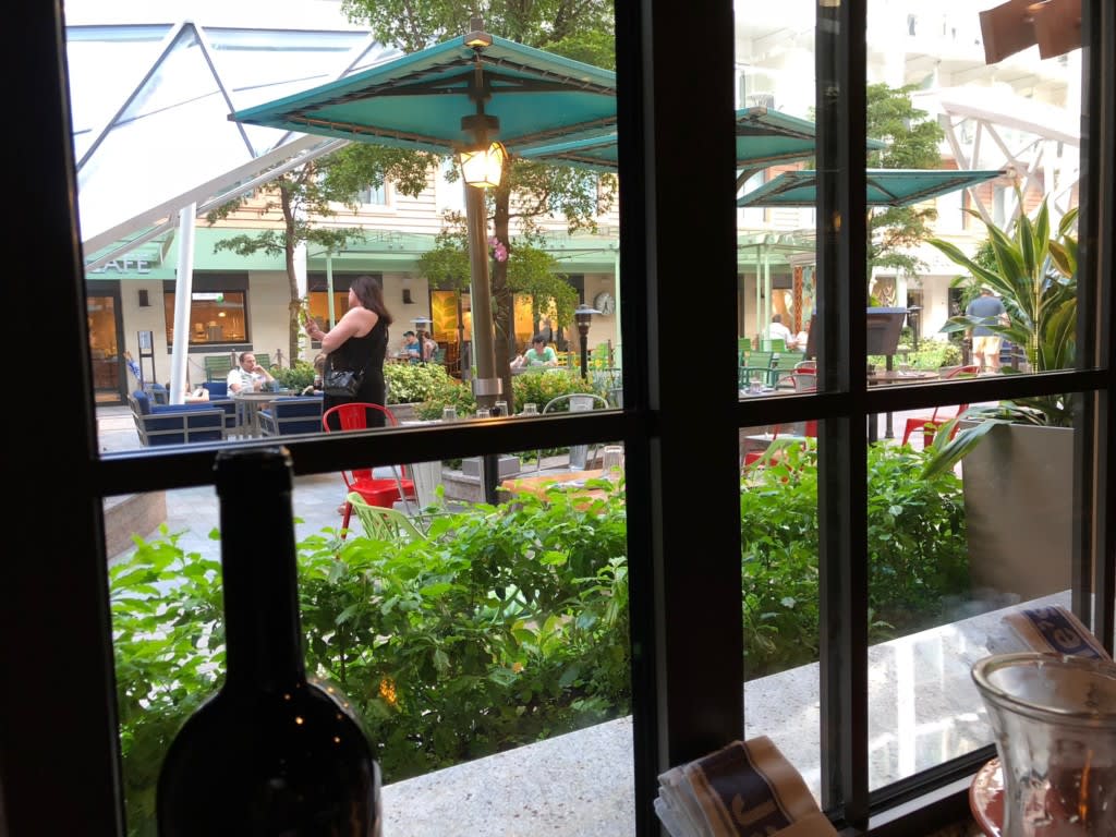 窓際の席に通してもらいました。ジェイミーのお店の中から見たセントラルパーク。夕食時間としてはかなり明るいのは17:30頃だからです。