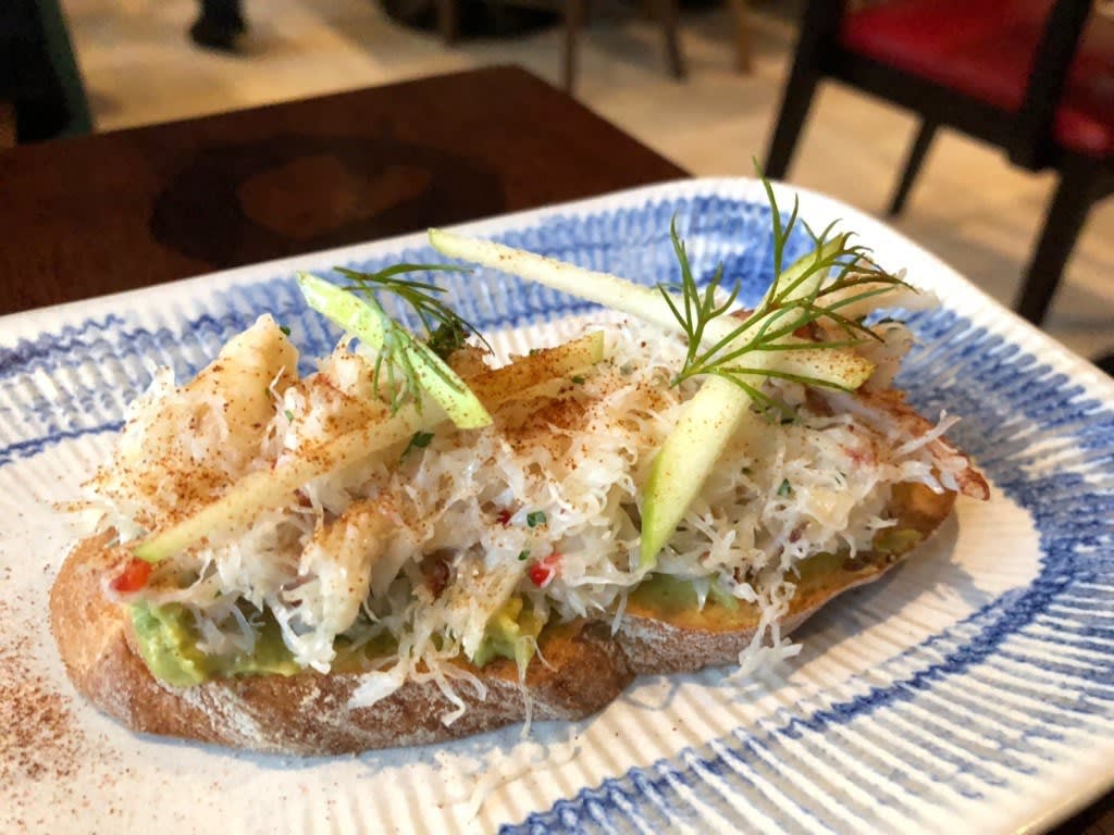 クラブ&アボガドブルケスタ。蟹&アボガド好きなので嬉しい一品。