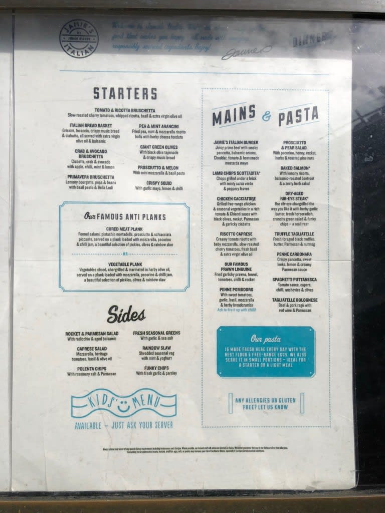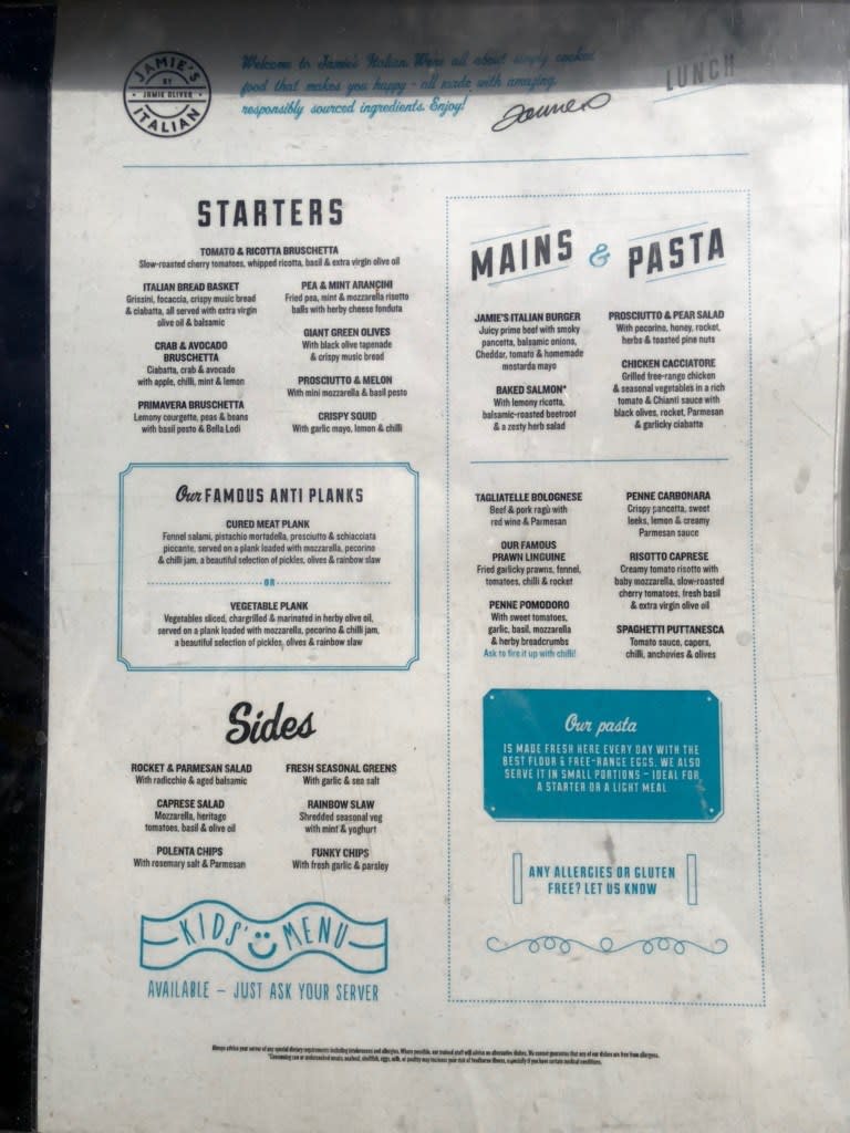 Jamie’s Italianカバーチャージ&メニュー