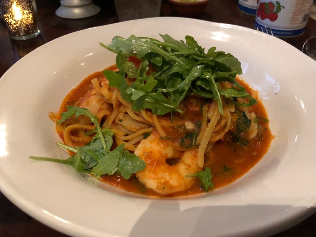 主人のメインはスパゲッティプッタネスカ。麺はちゃんぽん面のように太いのですが、ソースが麺に絡まっていなくてそして全体的に味がとても薄くて残念でした。かつてイギリスの街中で食べたパスタと同じ味でした…。
