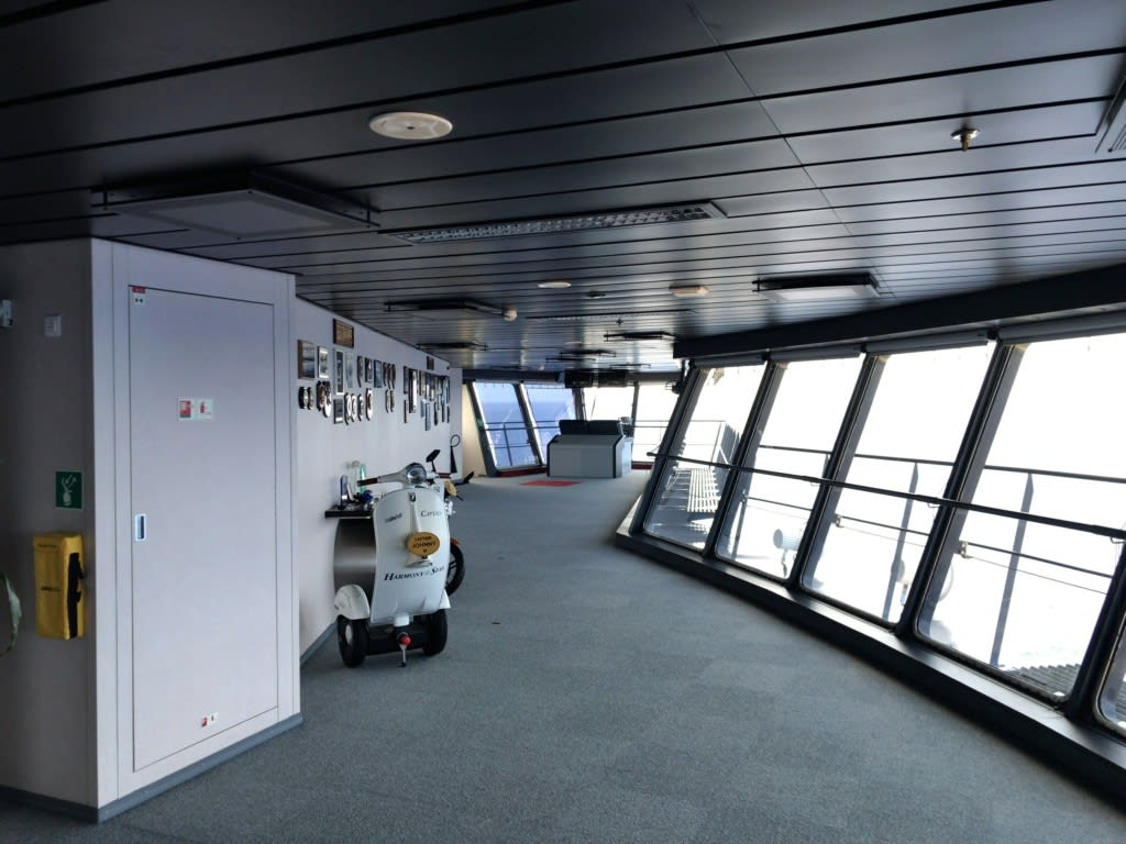 昨今では操舵室(Bridge)はテロ、ハイジャック対策で見学ができないクルーズ船が多い中、ハーモニーはそこも含めて見学ができます。