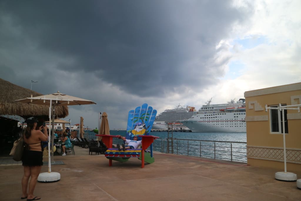 エクスカーションは中止になったけれどコスメル港に停泊中、入港してくる他のクルーズ船をじっくり眺めながら朝食を取れたこともまた楽しいイレギュラーでした。