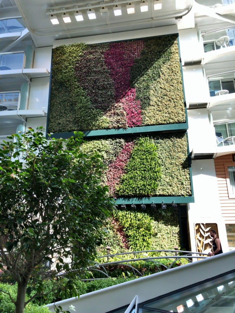 このセントラルパークの吹き抜けの上、最上階には両サイドにプールがあります。プールの塩素水がこのセントラルパークにも落ちてきて植栽が枯れてしまうという苦労もあったようです。
