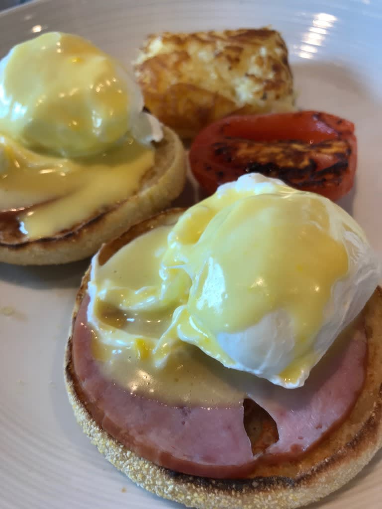 私はエッグベネディクトを注文したのですが1つだと思っていたところに2つ…これだけでもかなりのボリュームです。エッグベネディクト美味しかった〜!