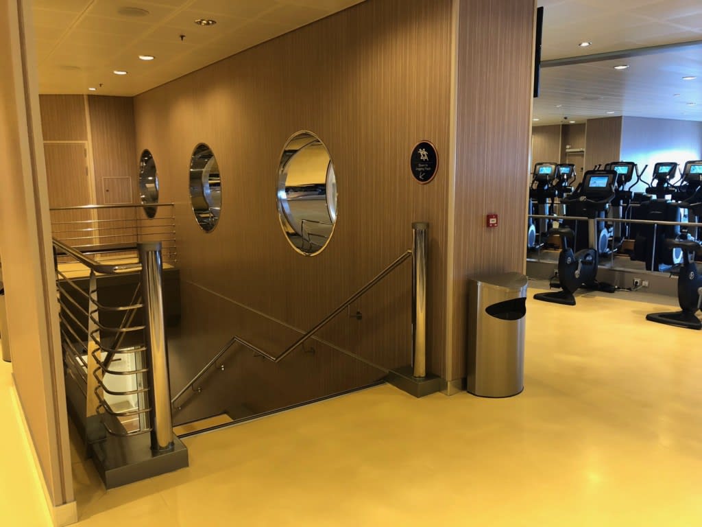 デッキ6前方にあるVitality at sea fitness centerはSpaと同じ入り口です。