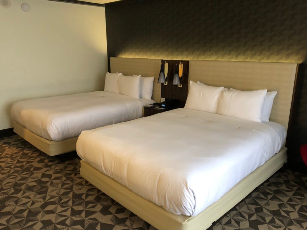 セミダブル級のベッドが2つ!ツインルームでこの大きさは日本のホテルではみられないサイズ感!そしてベッドが高いです。