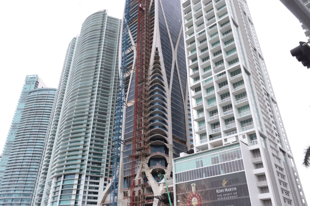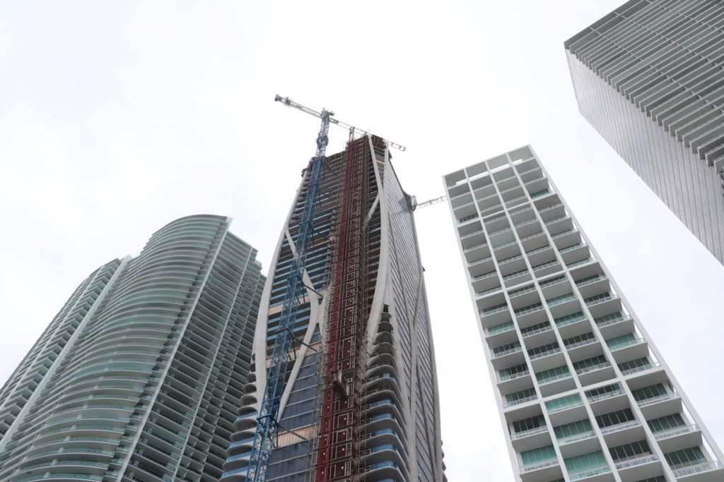 ベイフロントに建つ高層マンション、という感じでしょうか。建設の仕方が珍しい光景でした。