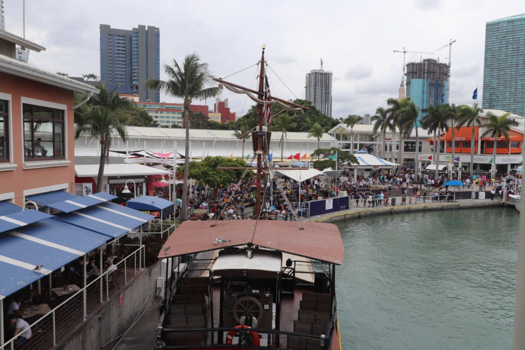 マイアミ港乗下船の旅行客から地元民までごった返すベイサイド・マーケットプレイス。