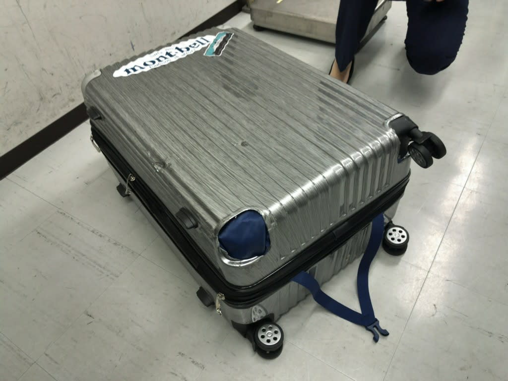 大小4つのスーツケースを手荷物として預けていていました。4つのスーツケースのうち、一番新しい、そしてたった1度しか使っていないスーツケースが見るも無残な形状で出てきました。