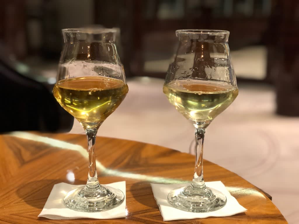 船内で飲んだスパークリングワインは特にメニュー指定しなかったものを飲みました。スパークリングワインは好きなので大体のボトルの値段は想像がつきました…。