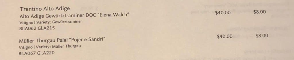 グラス1杯8.00ドルの白ワインを飲んでみました。どちらがどちらだったか…(確認中)。どちらもすっきりした味わいで飲みやすく、何杯でも頂けてしまいます。こちらも1杯サービス料込みで12ドル以下なのでフリーです。