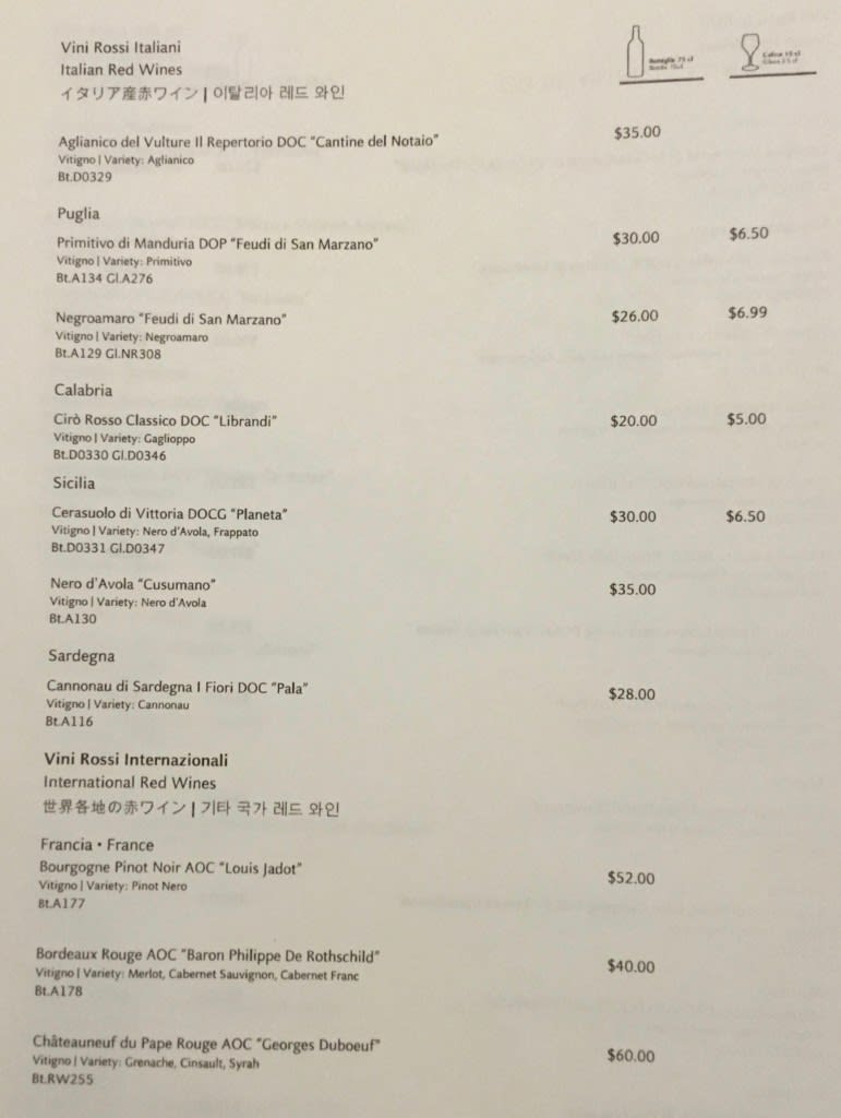 2018コスタネオロマンチカ乗船記(2):ドリンクメニュー・ワインリスト|赤白ワインの感想|ドリンクパッケージ