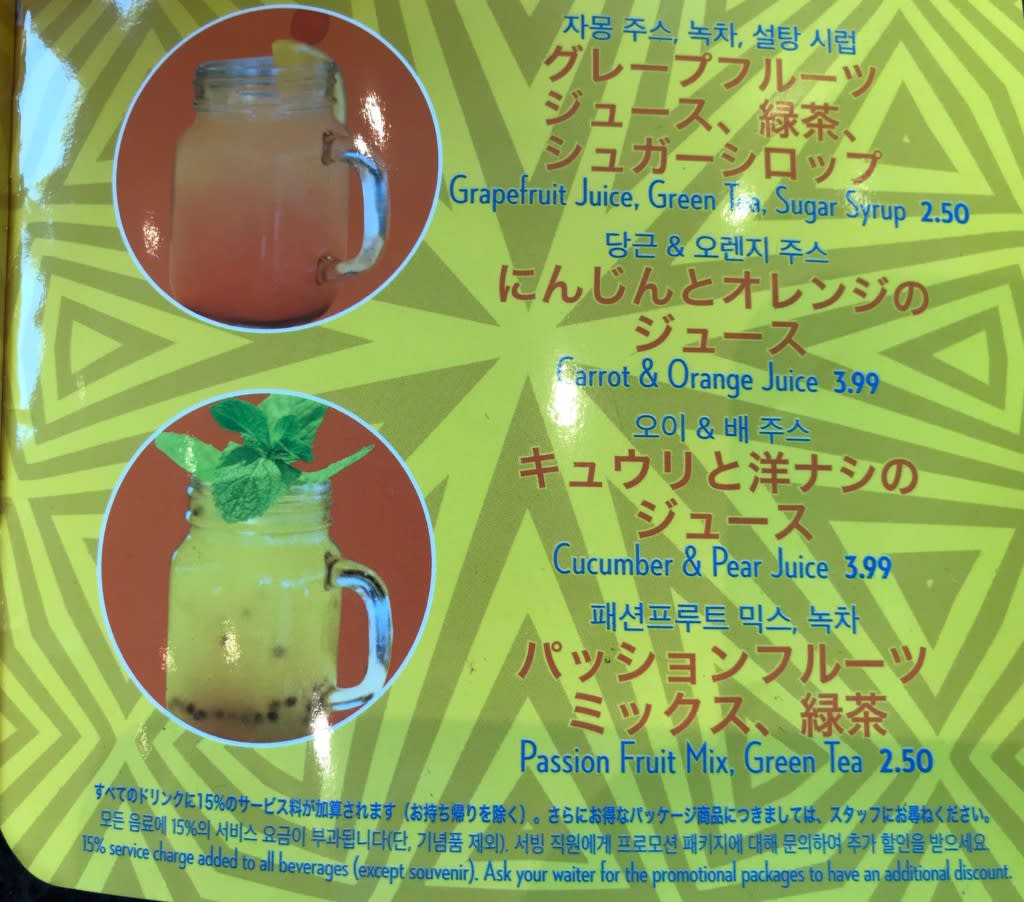 コスタネオロマンチカではバリュープランでの申し込み以外は旅行代金にドリンクパッケージ(飲み放題プラン)が入っています。その中でも『オールインクルーシブドリンクパッケージ』だとアルコール飲料以外でも12ドル(飲み物にかかるサービス料15%を含む)以下のカフェメニューも対象となっています。
