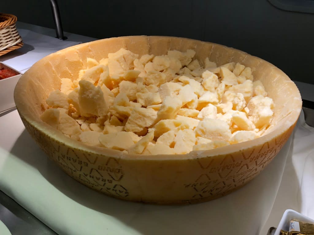 昨年乗船した時は数種類のチーズが並べられていましたが、今回のクルーズでは前半はこのパルミジャーノ1択でした。チーズの種類が減ってかなり残念でした。パルミジャーノも美味しいのですがかなりしょっぱくつまみ向け。