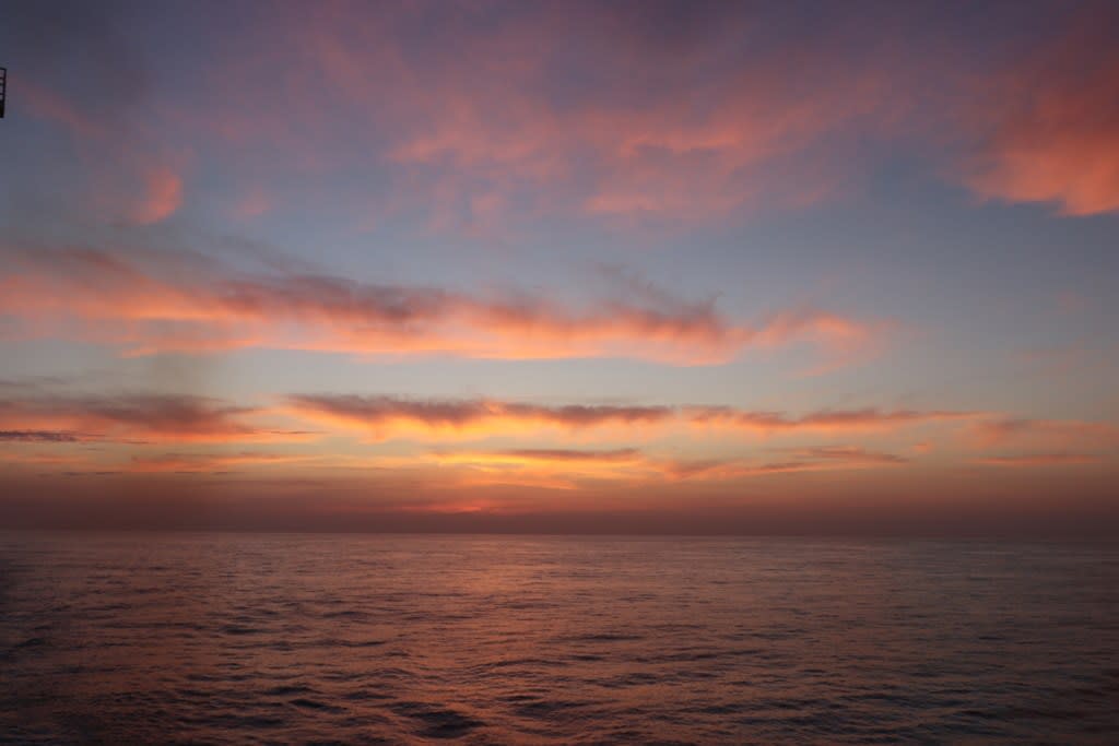 ベッドで横になって見る朝焼け。何とも美しく、そして1度しか見れない風景。天気がよいと同行カメラマン(夫)が夜明け前からバタバタ騒ぎ出して写真撮影に大忙し。