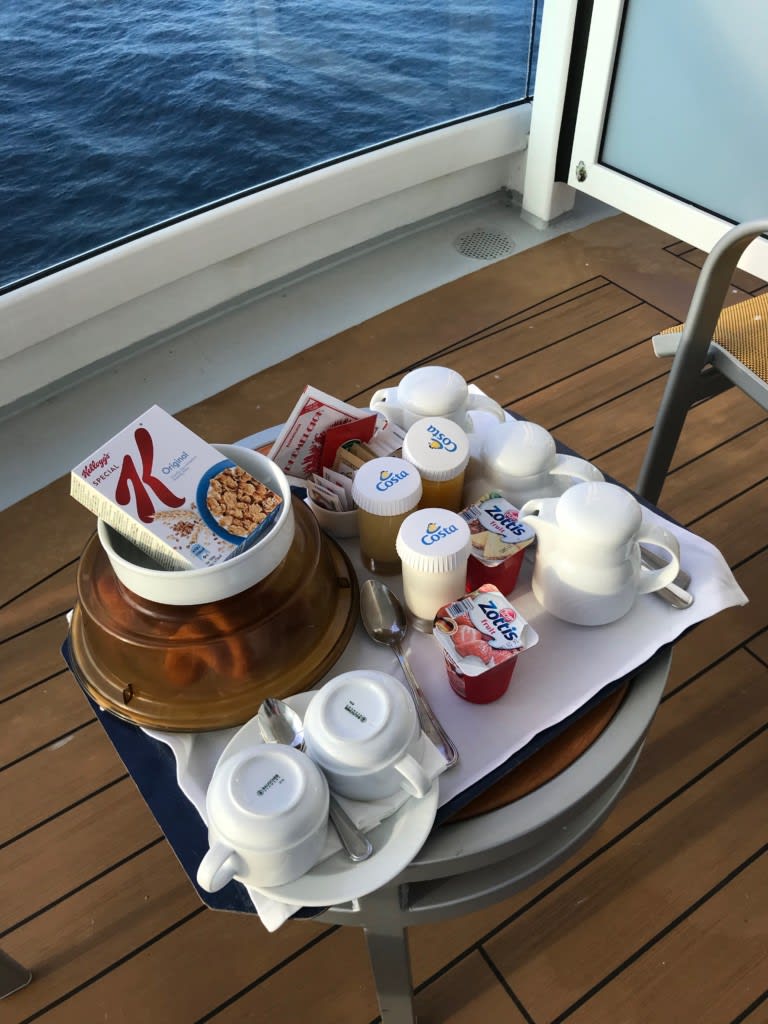2018コスタネオロマンチカ乗船記(15):2日目ルームサービスの朝食
