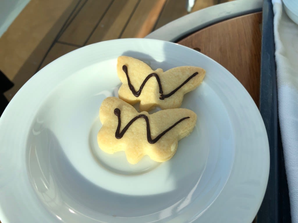 今回の乗船で夜の部屋清掃の後に必ず置かれていたクッキー。新しいサービス?素朴な外見ですが結構好きな味で毎日楽しみにしていました。