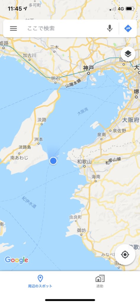 デッキ右舷側で若干の電波を拾うことができたり、できなかったり。お昼前には大阪湾入り口あたりにいました。