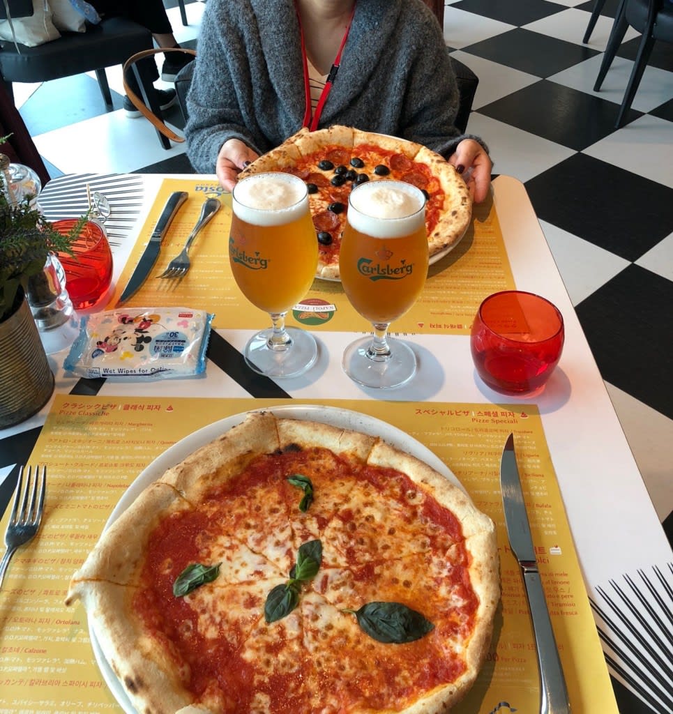 昨年乗船した時はオーダーしたピザが運ばれてきたときに台風による釜山港での足止めのアナウンスがちょうど流れ…食べたけれど味わっていませんでした。