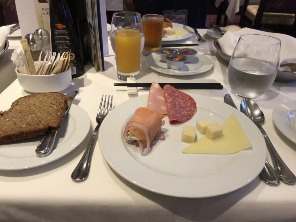 ↓こちらも2017年9月乗船時の同レストランでの朝食メニューにあったサーモン、チーズ、ハムなど。今回はメニューにはありませんでした。