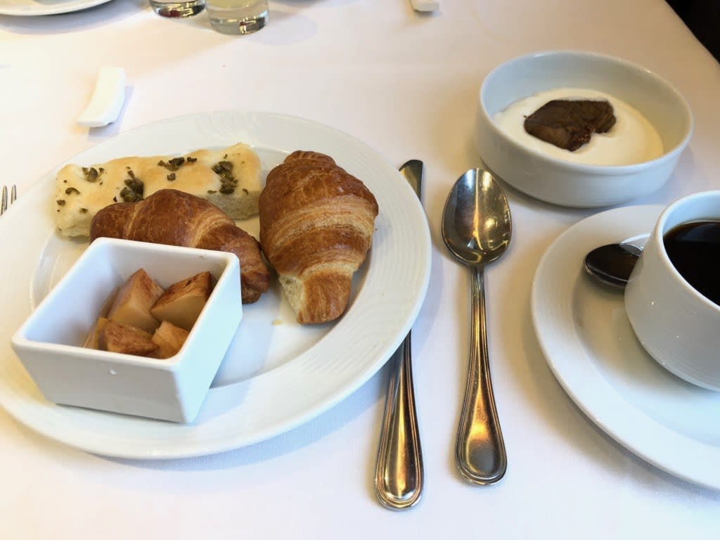 ↑こちらは主人が選んだパン類、ヨーグルト。これらと他にサラダ、スープ、ジュースなどはポッティチェッリ中央に置かれていてブッフェ方式で取りに行かなくてはなりませんでした。