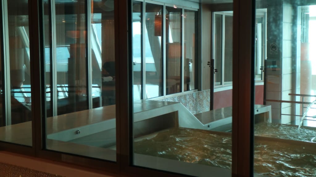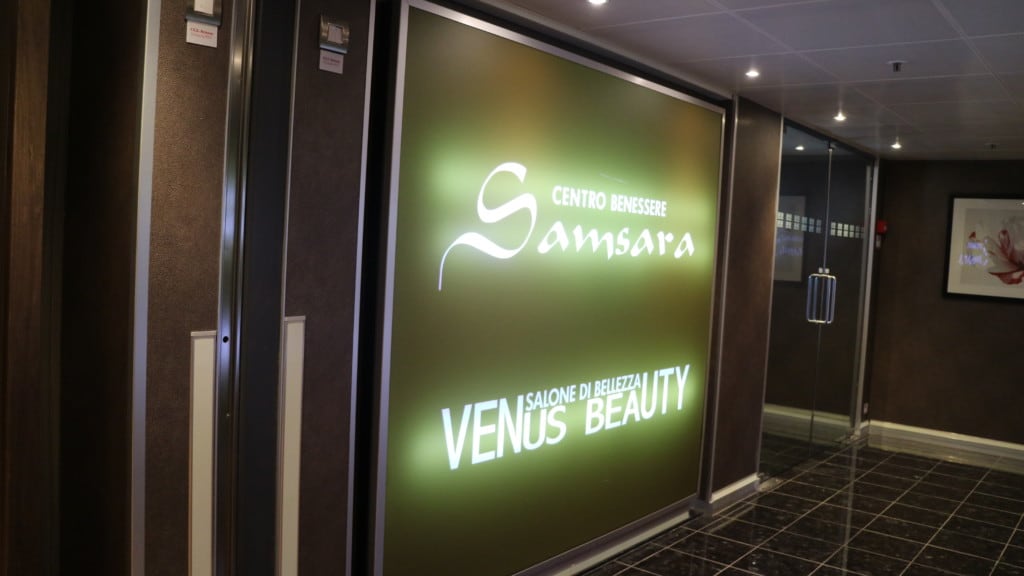 サムサラスパは乗船前に中をスタッフの案内で見学することができます。タラソテラピープールやサウナエリアは水着の着用が必須となっていますが、営業中の写真撮影はできないことになっています。(記事中の写真は見学時間内の時のものです)