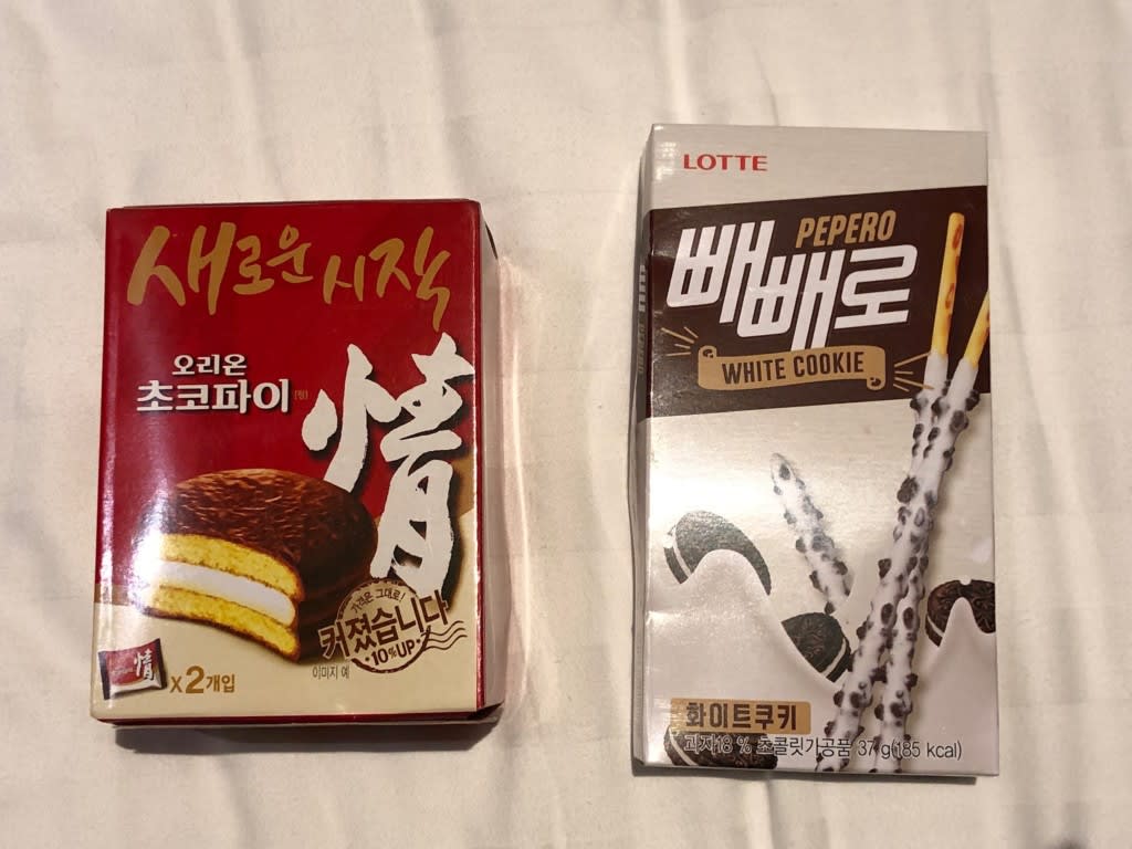 日本のチョコパイに似た『情』、ポッキーに似た『ぺぺロ』。ぺぺロ懐かしい!パッケージもなんとなく似ています。どちらもチョコレートがライトな感じです。500mlのミネラルウォーターを買って全部で約280円程、安いです。セブンイレブンは日本同様クレジットカードが利用できます。