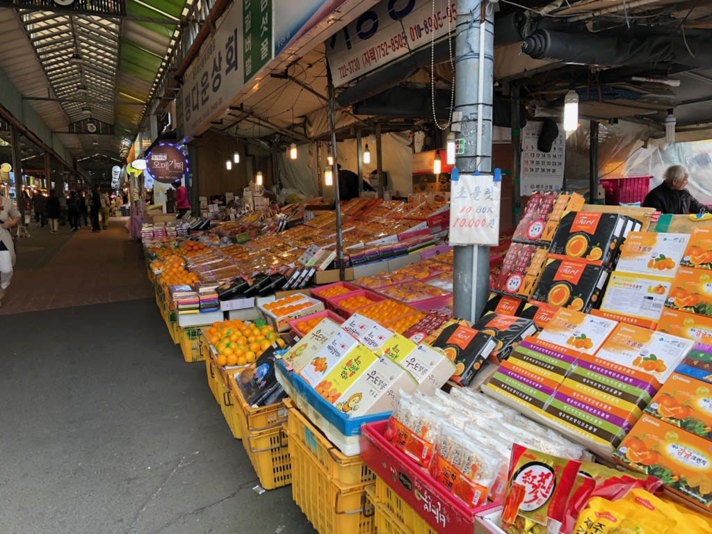 青果、水産物、衣類、土産物・雑貨など取り扱い商品は多く、済州島の特産品であるデコポンやミカンをはじめとした済州ならではの特産品が豊富で安くで購入できることから、済州を訪れた観光客にも人気のショッピングスポットということです。