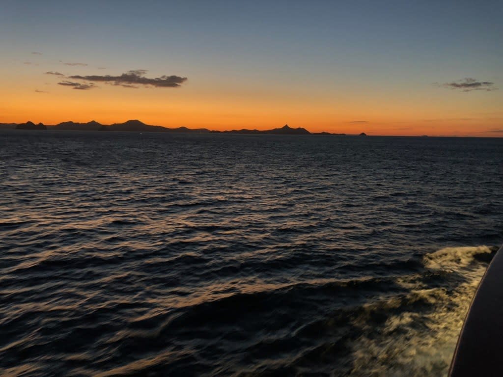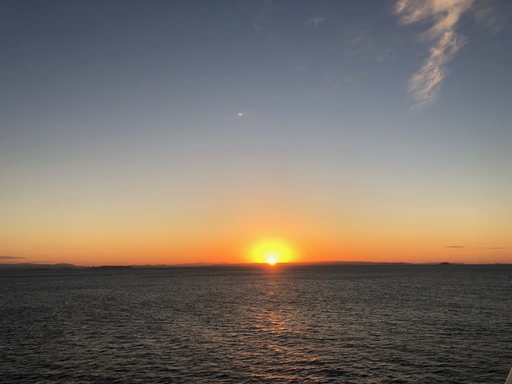 11月15日の洋上での夜明け。空が明るくなってきたこの時の時間は午前6時24分です。お天気が良さそうな予感!(私は寝ていましたが!)
