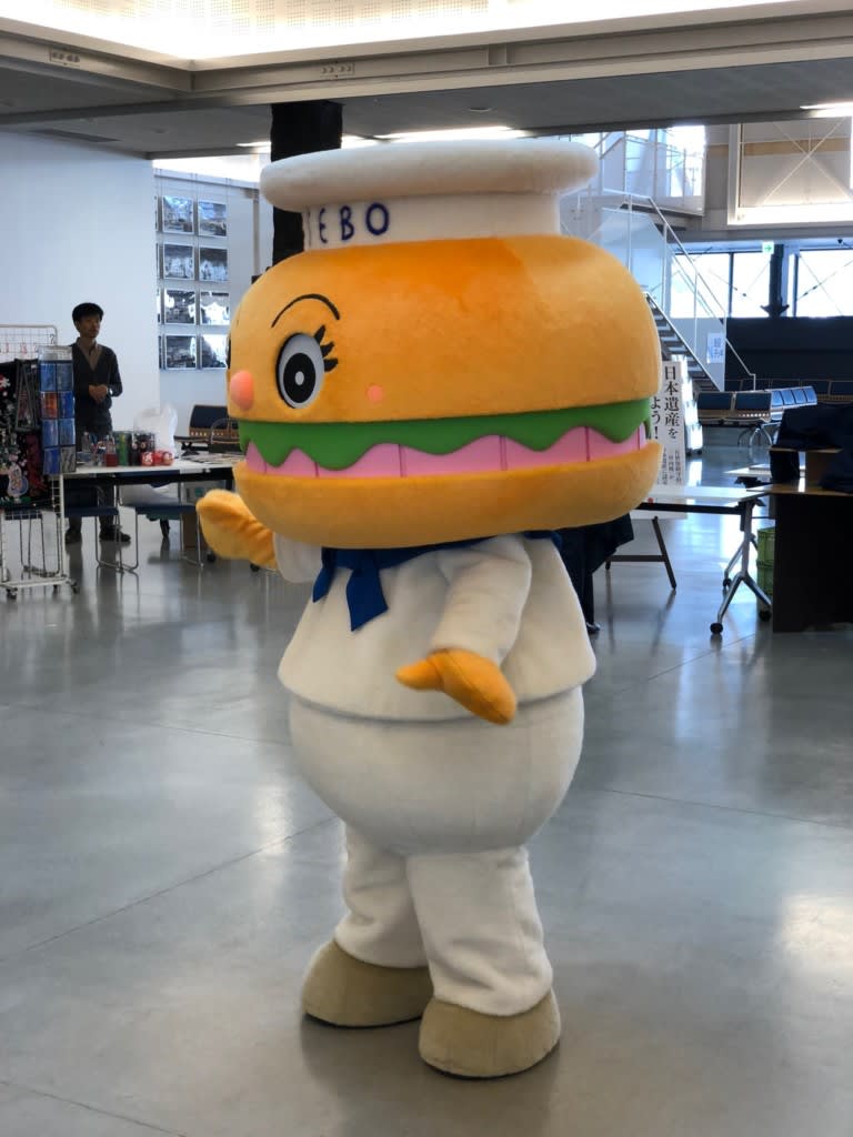 佐世保バーガーボーイが元気にお出迎え!デザインはアンパンマンの作者やなせたかし先生です。
