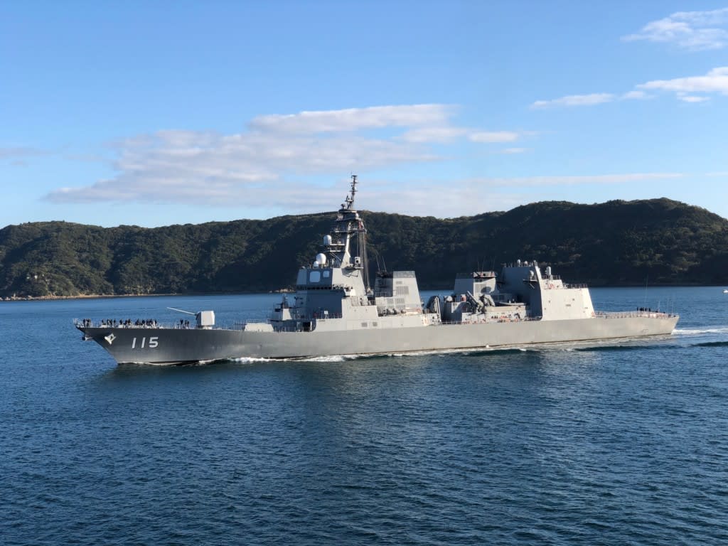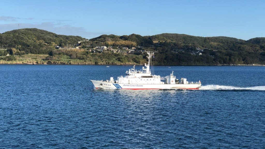 8時40分頃にはかなり航行速度がゆっくりになってきたので、佐世保港に近づいているのがわかりました。護衛艦『あきづき』に海上保安庁の船が通り過ぎて行きます。