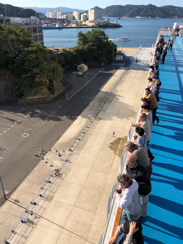まず、佐世保で寄港地観光ツアーを予約されている方から順次下船となったので、朝食後船内のあちこちで下船を待つ人で溢れていました。