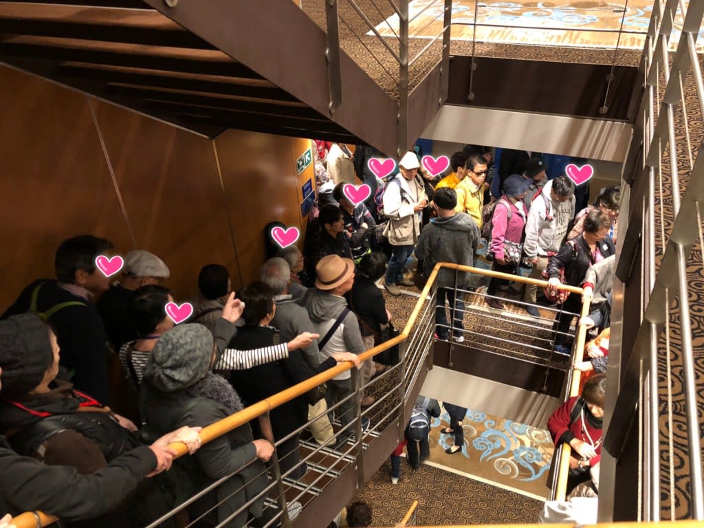 船を下船後、クルーズターミナル内でCIQ(税関・出入国審査・検疫)を受けるための長蛇の列…。