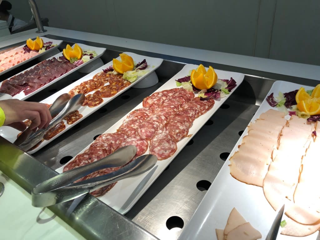 ブッフェレストラン・ジャルディーノは17時からオープン。オープンと同時くらいに入店しました。お料理はいつもの感じでしたが、いつもパルメザンチーズしか置いていませんでしたがこの日は複数のチーズの塊があり好みの量を盛ることができました。