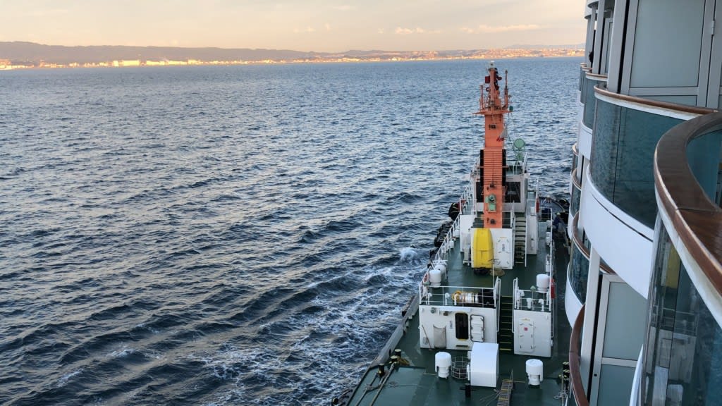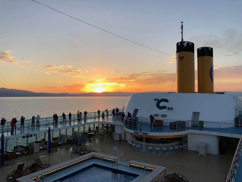コスタネオロマンチカ乗船6日目の朝も美しい夜明けを見ることができました。午前7時頃です。