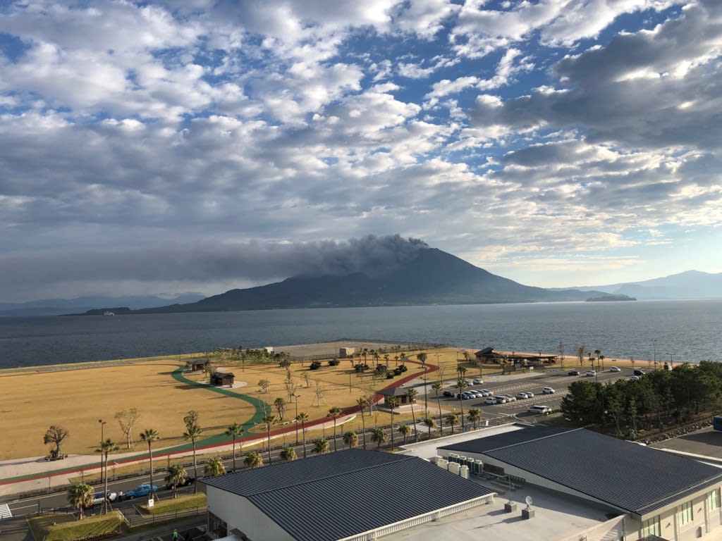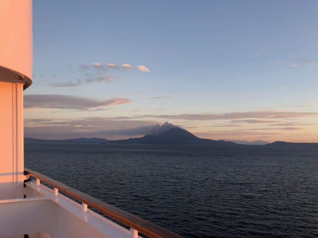 クルーズ最後の寄港地、鹿児島に午前8時入港する予定となっていました。前方には桜島が見えてきました。