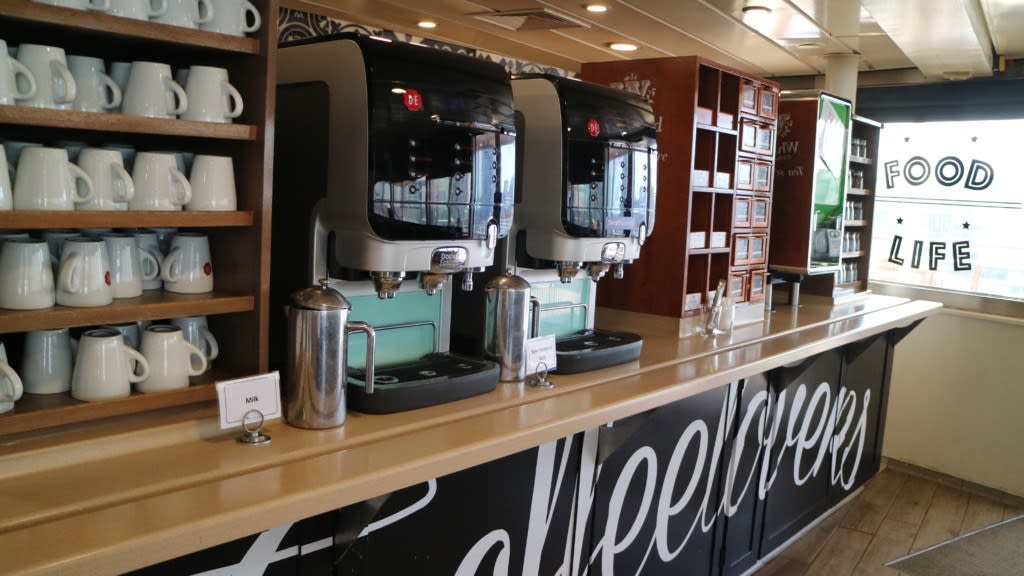 クルーズ船でこんなに可愛らしいブッフェレストラン、見たことないな〜というくらいカフェのような温かみのある内装でした。