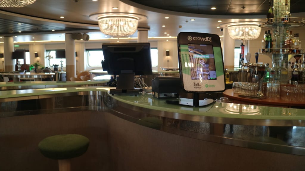 バーカウンターの上にタッチパネルがあって「これでお酒を注文するのか?」と思いきや…『Crowd DJ』というGoogleのアプリのようでした。バー、ボウリング場、クルーズ船などでお気に入りの曲が聴ける!というアプリだそうです。