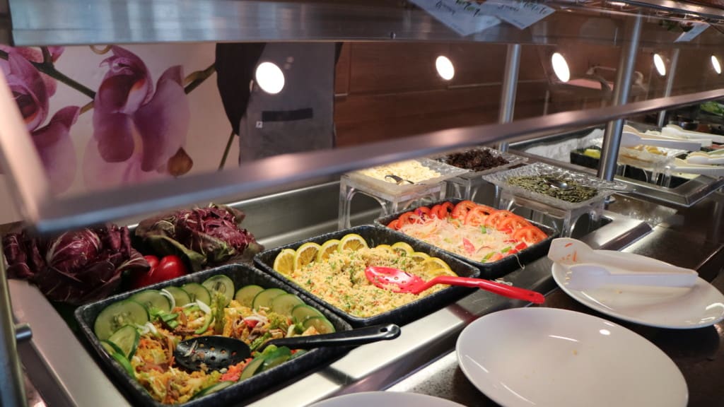 プールと同じリドデッキにあるブッフェレストラン、Plantation Bistro(プランテーションビストロ)に入った時、ちょうどお昼時でしたのでランチブッフェの最中でした。