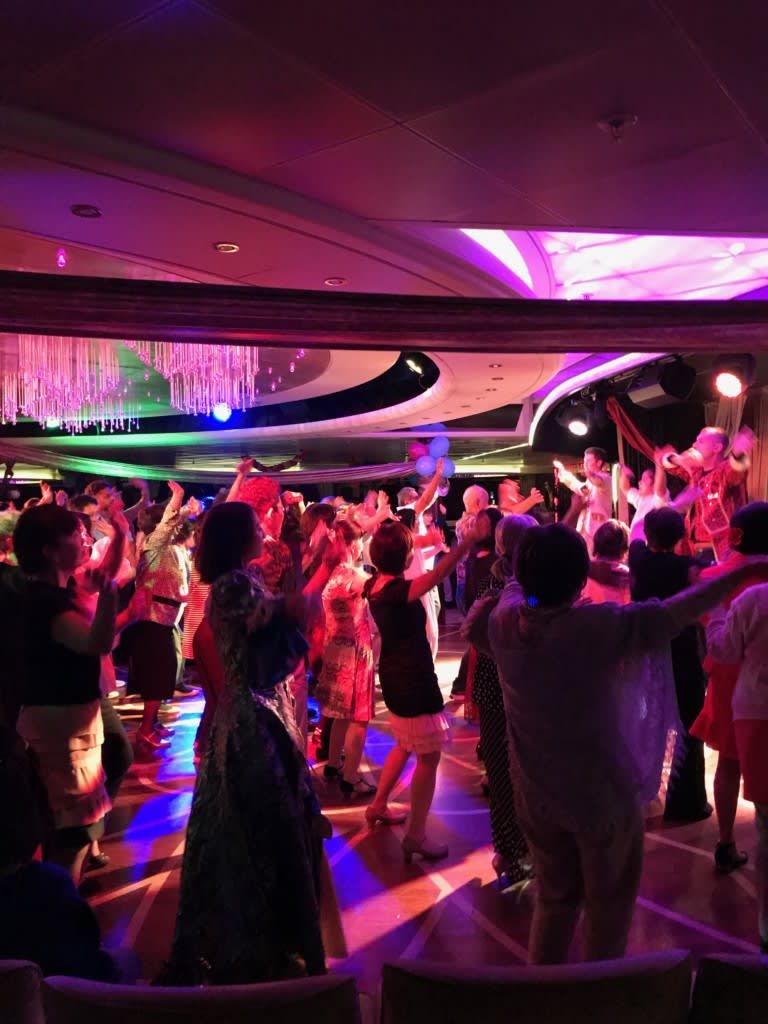 私たちはというと、ベネチアンマスクを買うでもなく、それっぽい服装をするでもなく…夜な夜な行われていたカーニバル・オブ・ヴェニス・パーティーを眺めておりました。実際、ベネチアンマスクを装着している人は少なく皆さんカジュアルな服装でダンシング!なんだかんだで宴は夜遅くまで続いていました。