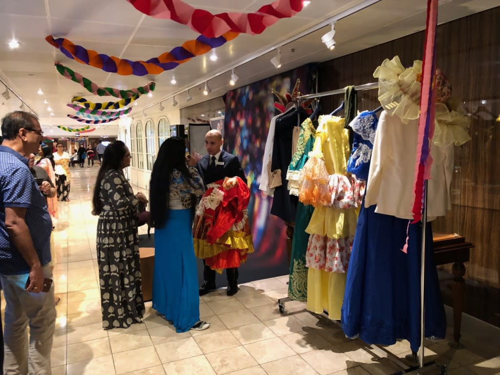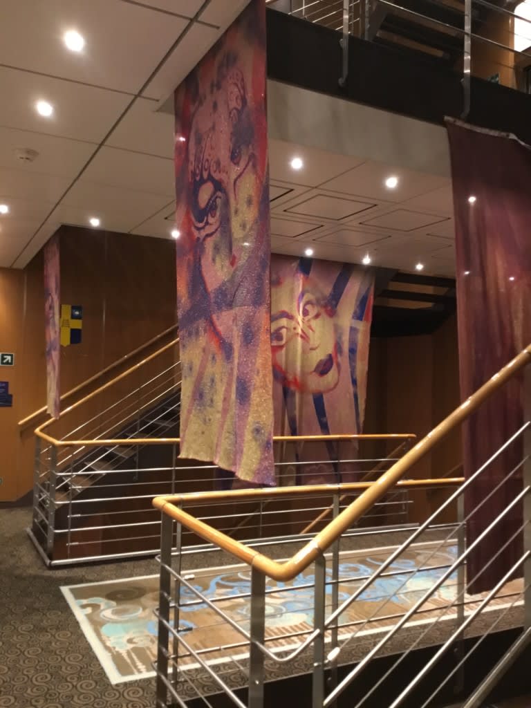 この日はコスタクルーズでおなじみの「仮面」ナイトの日!船内の飾り付けも妖艶な仮面女性が描かれたタペストリーが飾られていました。