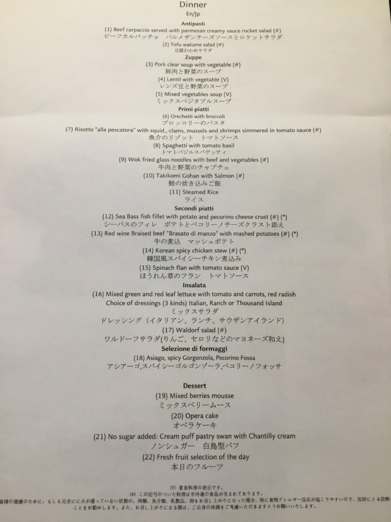 この日の夕食はメインダイニングとブッフェレストランのメニューを見比べてから決めることにしました。