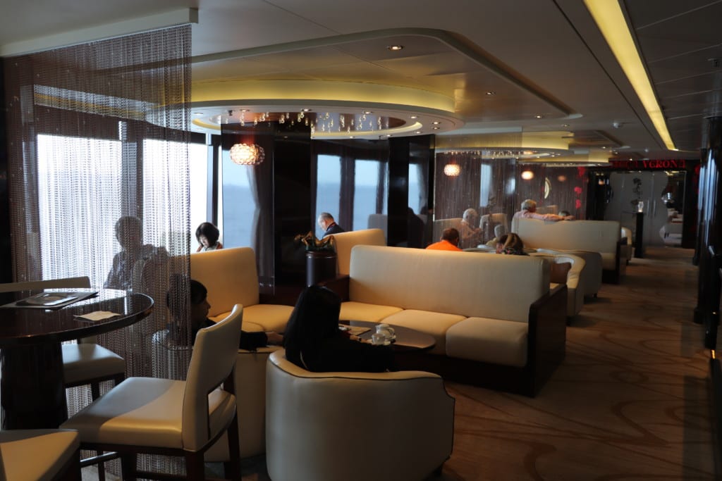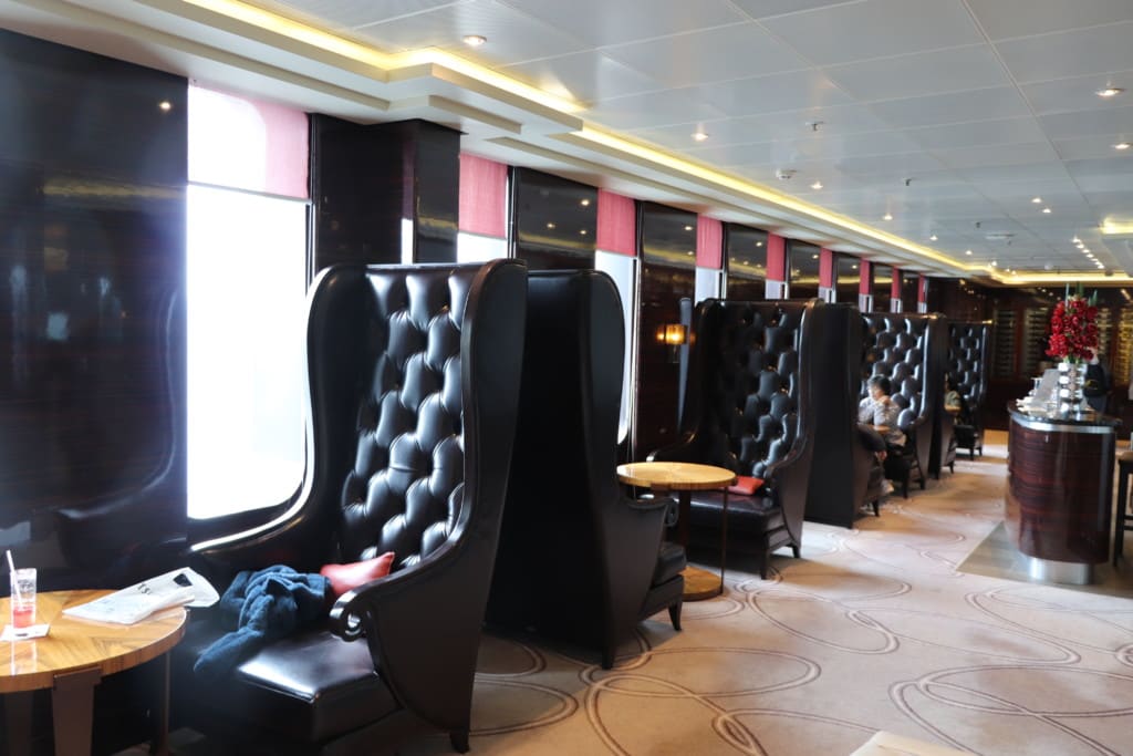 昼間人が全くいない後方のキャバレービエンナは航跡を眺めながらぼーっとするにはいい空間ですが椅子が長時間座る向けではないのが残念。いくつかあるソファ↑は長居ができそうですが大抵ペーパーバックに集中している外国人の人が座っていました。